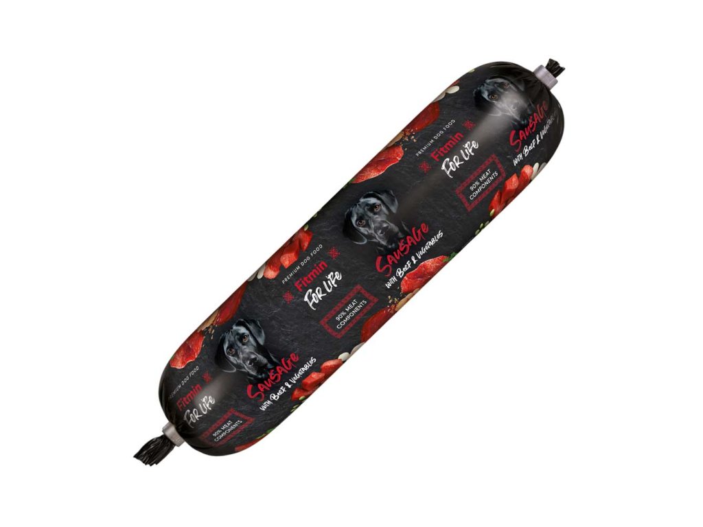 Саламът за кучета Fitmin for Life е стерилизиран продукт, произведен изключително от естествени съставки. Саламът за кучета Fitmin for Life не съдържа консерванти, изкуствени аромати, оцветители, ГМО или глутен. Добавените пресни зеленчуци и ленено семе доставят на кучето ценни минерали и витамини, омега 3 ненаситени киселини и влакнини, наред с всичко останало. Морковите съдържат каротин, който е полезен за зрението, косата и кожата. Естественият колаген от хрущяла спомага за здрави стави и по-добро качество на козината. Саламът за кучета Fitmin for Life не съдържа зърнени култури, което въздейства благоприятно върху храносмилането и усвояването на храната. Редовното и балансирано хранене укрепва имунитета и подобрява цялостното здраве на кучето.