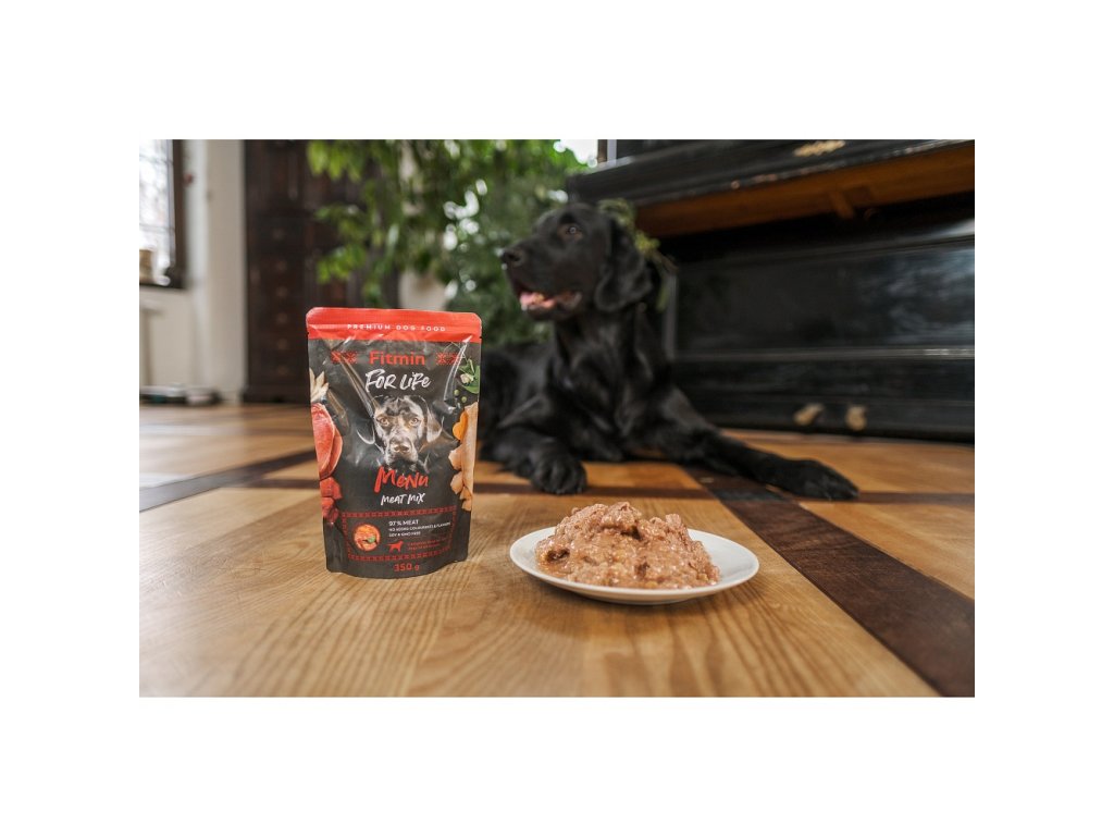 Fitmin For Life Menu Meat Mix Meat Tub се завръща в нова опаковка - торбичката е по-подходяща за съхранение и пътуване. Вашето куче ще хареса този джоб за месо.