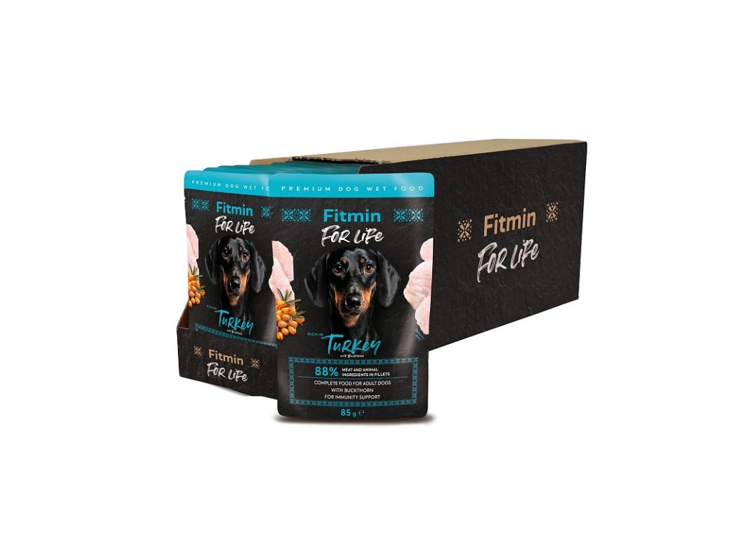 Fitmin For Life Пуешко пауче за възрастни кучета с облепиха 85 g