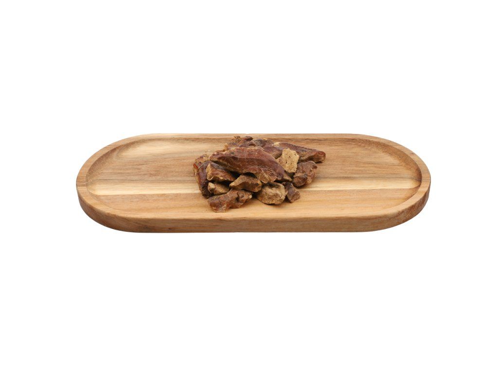 Късчетата лиофилизиран черен дроб са 100% натурални — хапки, благодарение на които вашият любимец ще слуша всеки път. Благодарение на сушенето чрез замразяване (лиофилизация), месото запазва естествения си вкус, аромат и структура и мотивира още при първото подушване. Черният дроб е храна, богата на хранителни вещества, и осигурява концентриран източник на нутриенти, които подпомагат имунитета и жизнеността на кучето. Монопротеиновият състав без зърнени култури, оцветители и консерванти е отличен и за чувствителни любимци. Късчетата могат лесно да се разделят на по-малки части. Преработено и ръчно пакетирано в Чехия, в подножието на Орлицките планини.