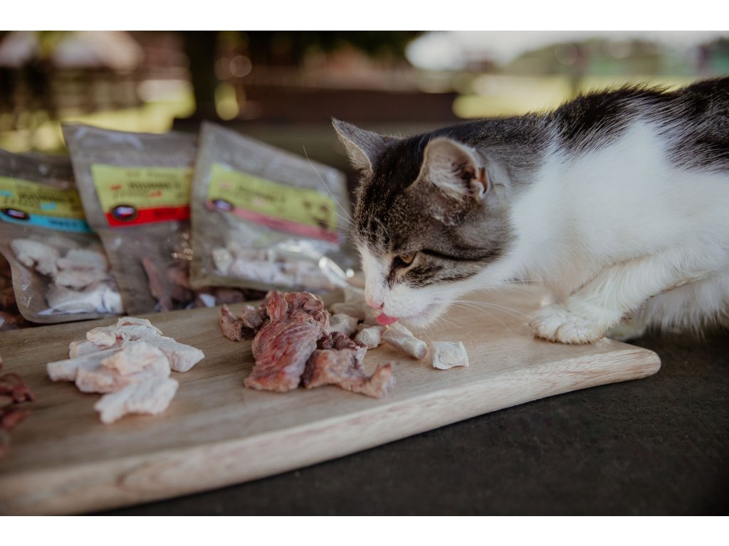 Използвайте като лакомство или като фуражна суровина. Препоръчителната дневна доза за лакомство е 10% от общата дажба. Винаги осигурявайте достатъчно прясна питейна вода. Заливането на лиофилизирана фуражна суровина с хладка преварена вода позволява приготвянето на напитка с парчета месо. След заливане да се използва до половин час.