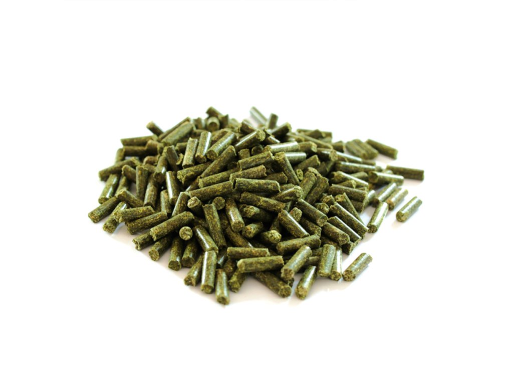 пулпа от люцерна, ябълково пюре, пшеничено брашно, соево масло, плод от копър, ленено семе, дрождеви продукти, Schizochytrium limacinum.