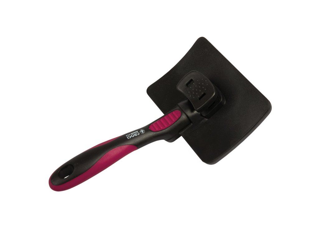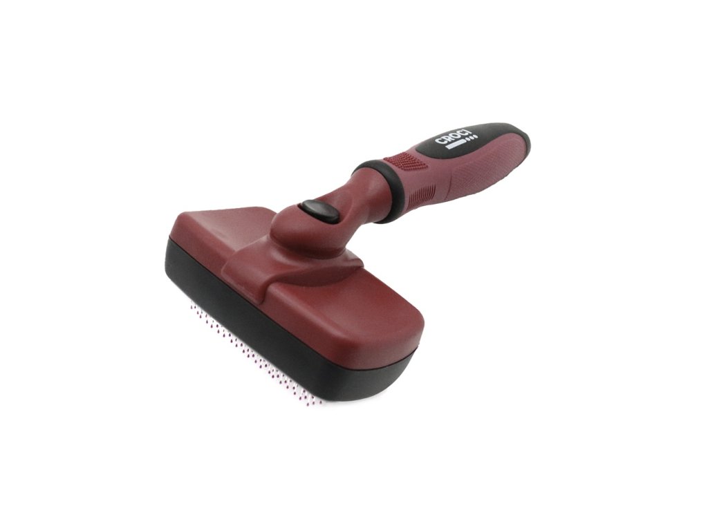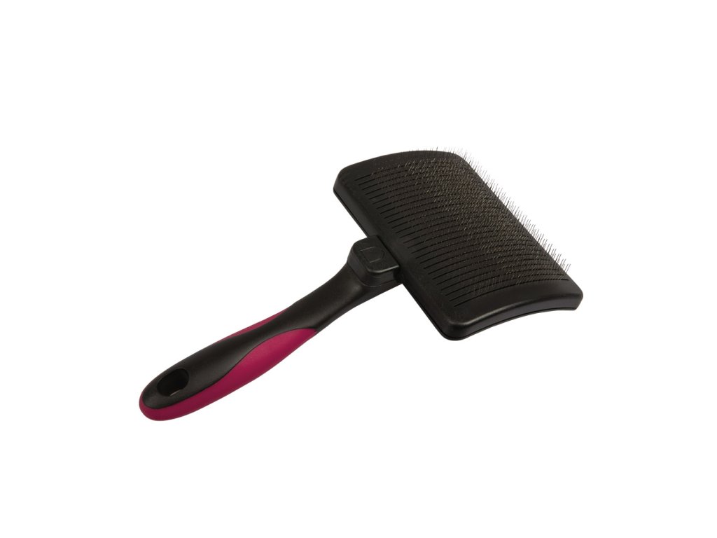 Голямата самопочистваща се четка е идеалният инструмент за отстраняване на мъртвите косми. Зъбците с висока плътност позволяват да се отстранят повече косми само с няколко движения в сравнение с обикновения гребен. Използвайте бутона на гърба на четката, за да плъзнете твърдата повърхност на четката напред и така да постигнете самопочистване без ползване на пръстите. Голямата четка е подходяща за всички видове козина на средни и големи породи.(Размери: 10,8 x 8 x 19,5 cm)