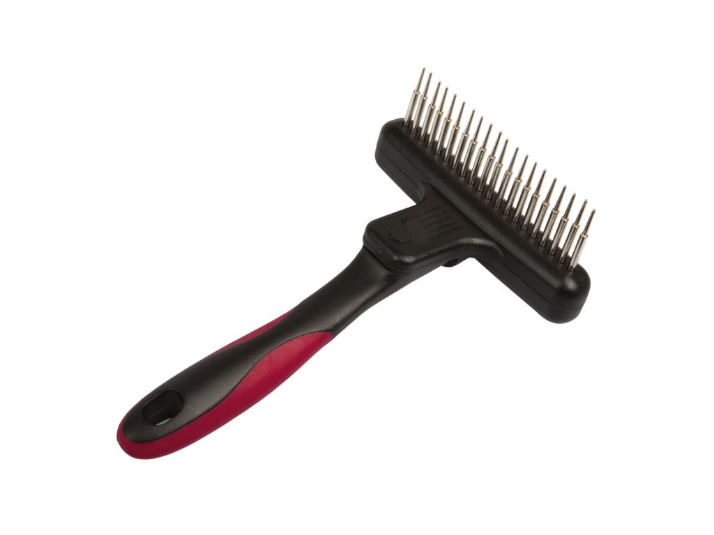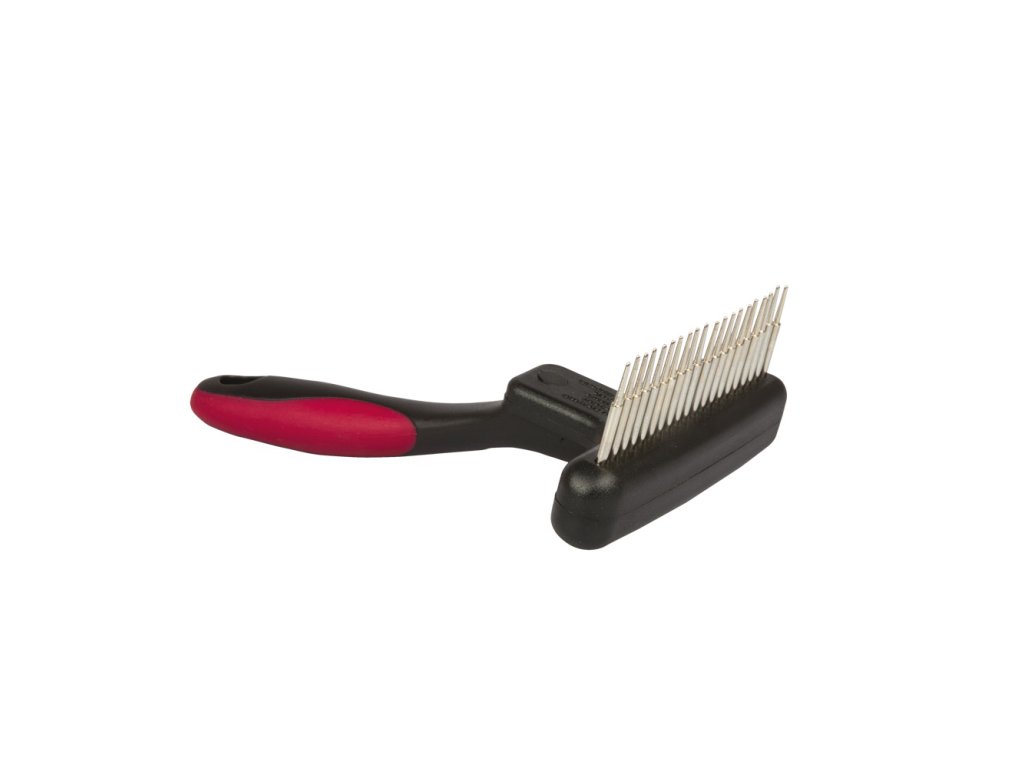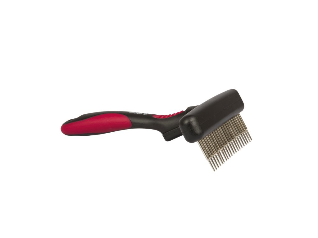 Практичният гребен за разресване на косата осигурява повече обем и мекота. Освен това премахва мъртвите косми. Заоблените ръбове на зъбите не увреждат кожата на кучето. Благодарение на специална пружинена система зъбите се нагодят към формата на тялото на кучето, което позволява приятна и нежна грижа. Въртящите се на 360° зъби не издърпват заплетената козина, а я разресват лесно и удобно.Допълнителни параметри