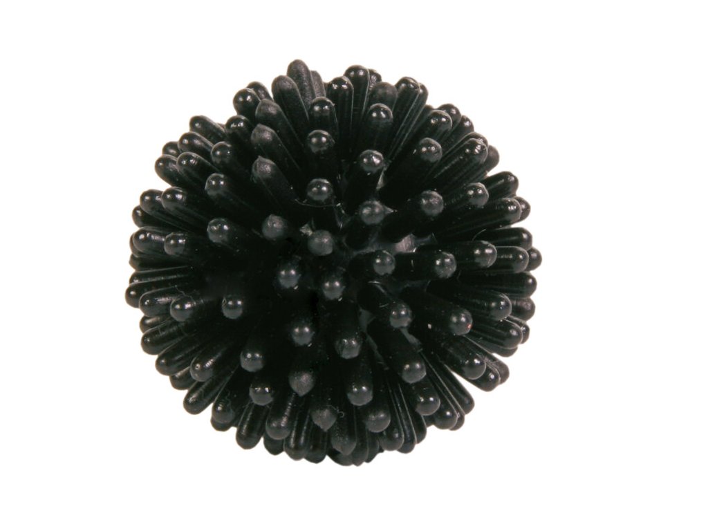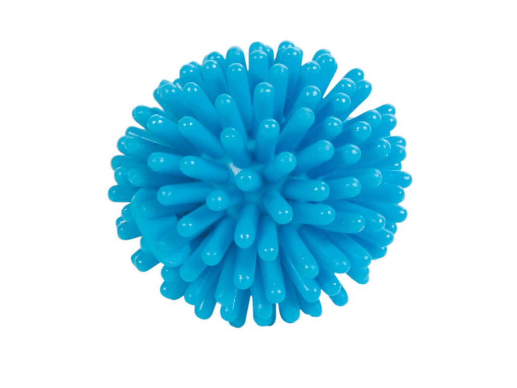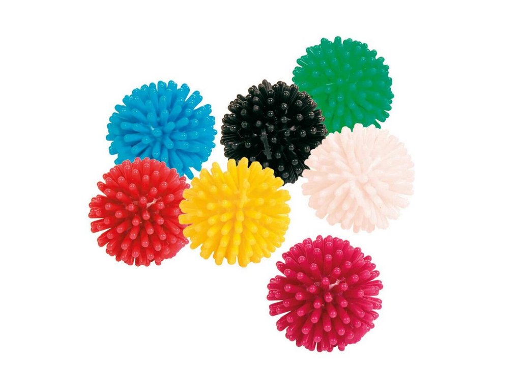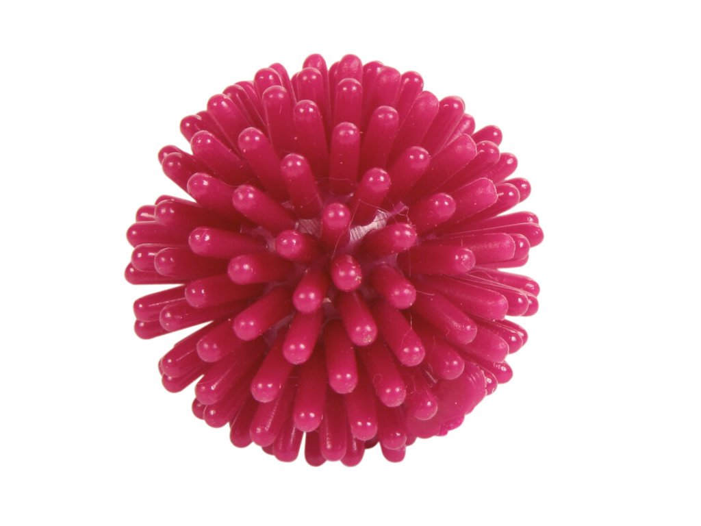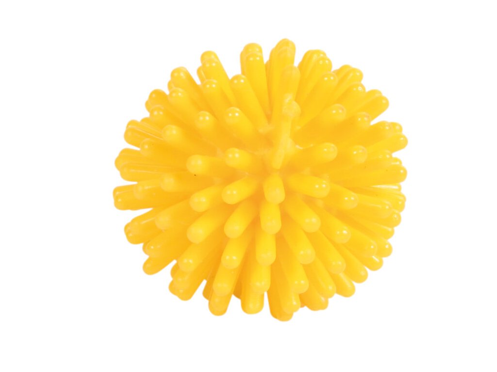 Малка винилова топка с шипове, която е подходяща за игра и апортиране.