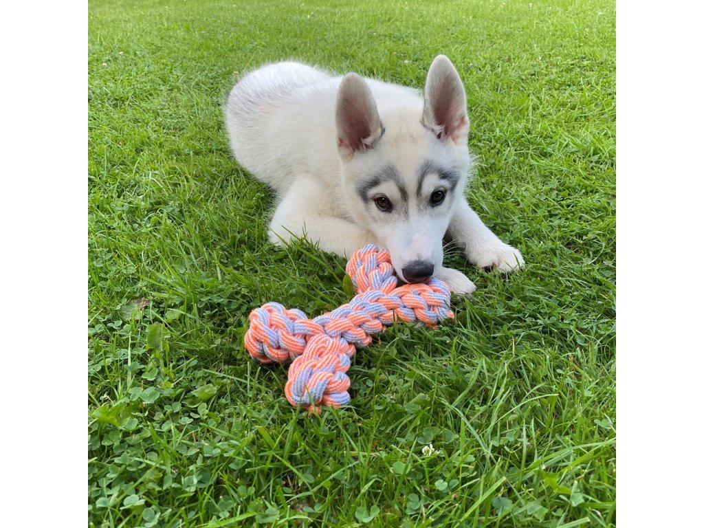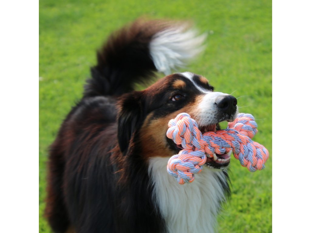 Забавна привлекателна играчка за кучета. Памучната кост е изработена прецизно, за да е удобна за кучето при апортиране и лесна за хвърляне от собственика.