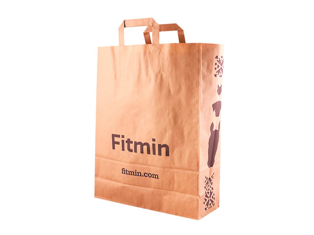 Практична хартиена торба с логото на Fitmin. Удобно боравене благодарение на големите уши на торбата.Торбата е изработена от 100% амбалажна хартия. Размерът на торбата е 32 x 12 x 41 cm.