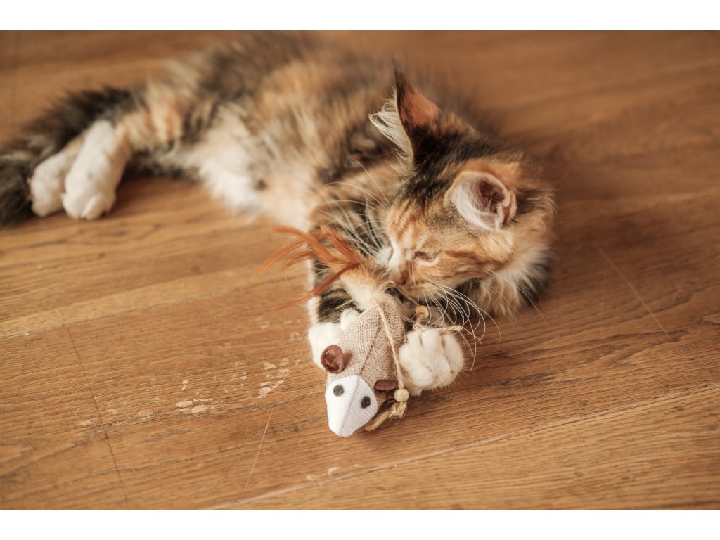 Вкусна играчка за вашия домашен любимец. Мишка от юта с перо и въженца вместо опашка, за страхотно забавление за вашата котка и по-малко куче.Бъдете първият, който ще публикува статия към този елемент!