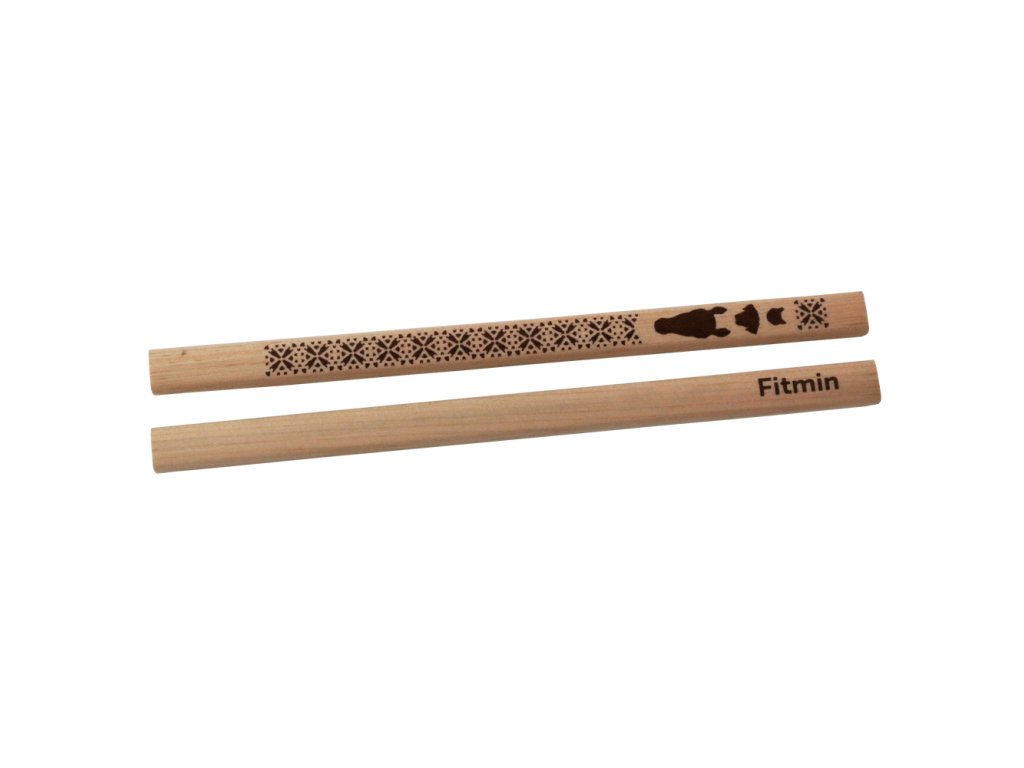 Молив от естествено дърво с декор Fitmin. Черен правоъгълен графит за лесно маркиране. Плоско-овална обработка на корпуса на молива. Моливът се доставя в ненарязан вид.