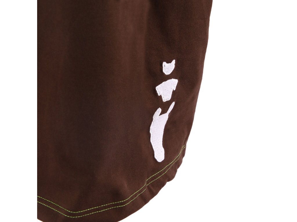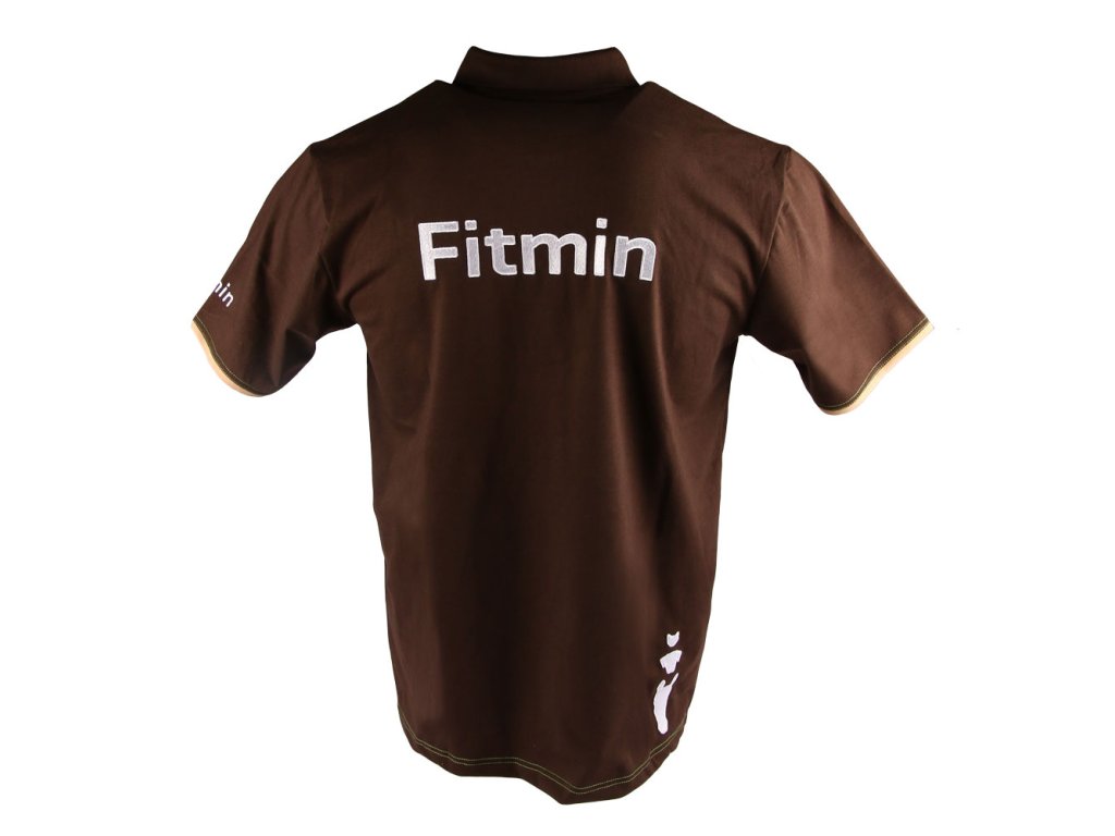 Кафява поло блуза с къс ръкав Fitmin с бродирано лого Fitmin на ръкава, гърба и лявата страна на гърдите. Специални копчета с логото на Fitmin и бродирани силуети на животни на гърба. Поло блузата е с яка и е изработена от 100% памук.